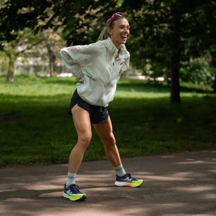 «Me gusta mucho esta última versión: aunque es muy liviana, su placa de carbono es más rígida y agresiva. Me encanta impulsarme desde el suelo y sentirme fuerte y poderosa a cada paso. Creo que es genial para el día de la carrera».
